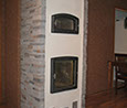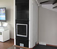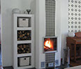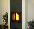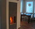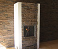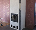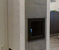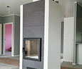 Osaksi hiertorapattu, edessä kaakeli, graniitti tai sisustuskivi. Nurkkaviisteellä tai suoralla nurkkaprofiililla.